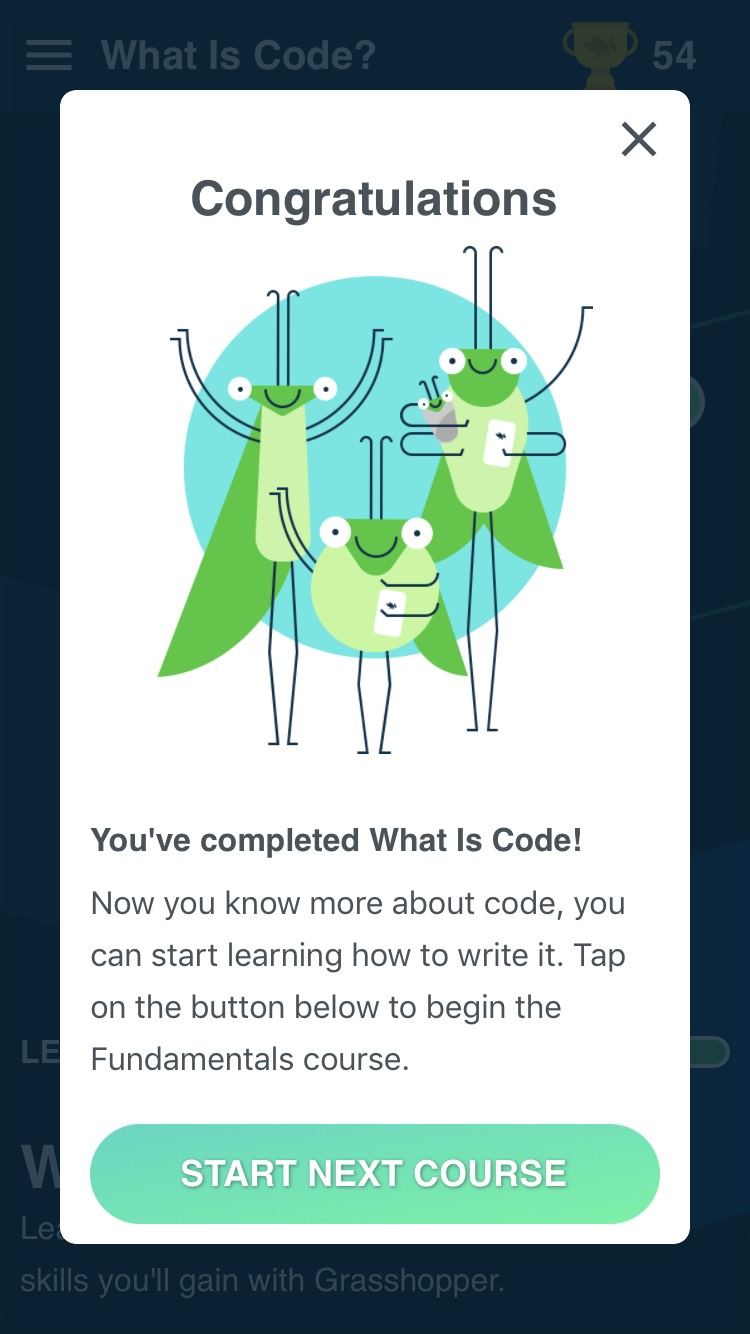Grasshopper จะสอนพื้นฐานการเขียนโปรแกรมแบบพื้นฐาน ด้วยภาษา JavaScript เป็นหลัก ซึ่งนี่เป็นการสร้างพื้นฐานการเขียนโปรแกรมเพื่อนำไปเป็นพื้นฐานการเขียนโปรแกรมขั้นสูง หรือสามารถนำไปพัฒนา Website ด้วยตัวเองได้เลยนะคะ