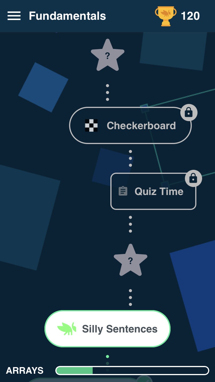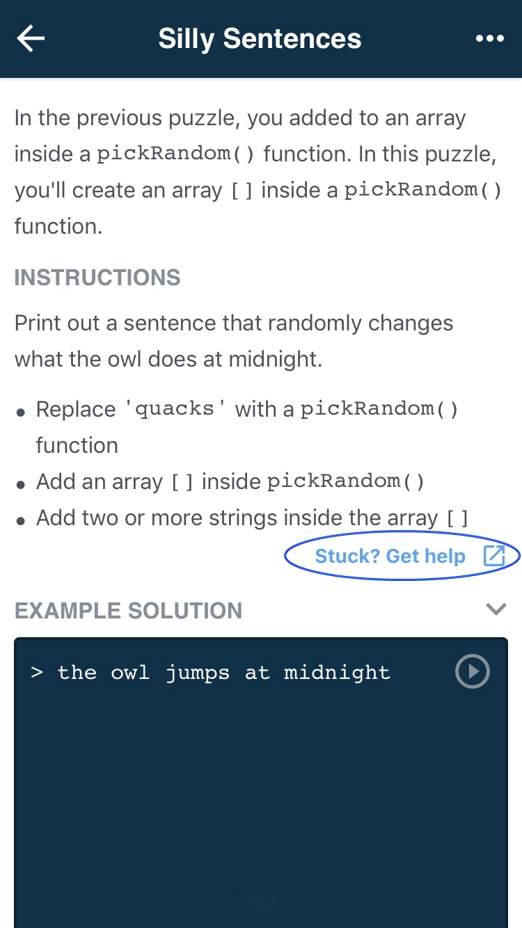 ส่วนในบทเรียนถัดๆ ไป ผู้เล่นจะได้เรียนรู้เรื่องราวที่ซับซ้อนมากขึ้น อย่างการเรียกฟังก์ชั่น ตั้งตัวแปร และโครงสร้างข้อมูลเช่นอาเรย์ และการใช้คำสั่ง LOOPS หรือการทำงานซ้ำ ซึ่งทั้งหมดก็จะเรียนรู้เป็นภาษาจาวาสคริปต์ สำหรับในบทเรียนที่สูงขึ้นก็จะมีความซับซ้อนมากขึ้นแต่ไม่ต้องกังวลนะคะ เพราะหากไม่เข้าใจจริงๆ ก็สามารถคลิกเข้าไปขอความช่วยเหลือได้ที่ Stuck? Get help ค่ะ