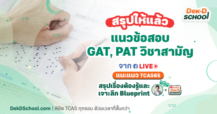 สรุปเรื่องต้องรู้และเจาะลึก Blueprint 65 แบบละเอียด ในวิชา PAT1 PAT2 PAT3 และวิชาสามัญทั้ง 7 วิชา พร้อมด้วยเทคนิคการทำข้อสอบ และตัวอย่างข้อสอบจริง สำหรับน้องๆ #Dek65 เตรียมตัวสอบได้ในเวลากระชั้นชิด โค้งสุดท้ายก่อนสอบ