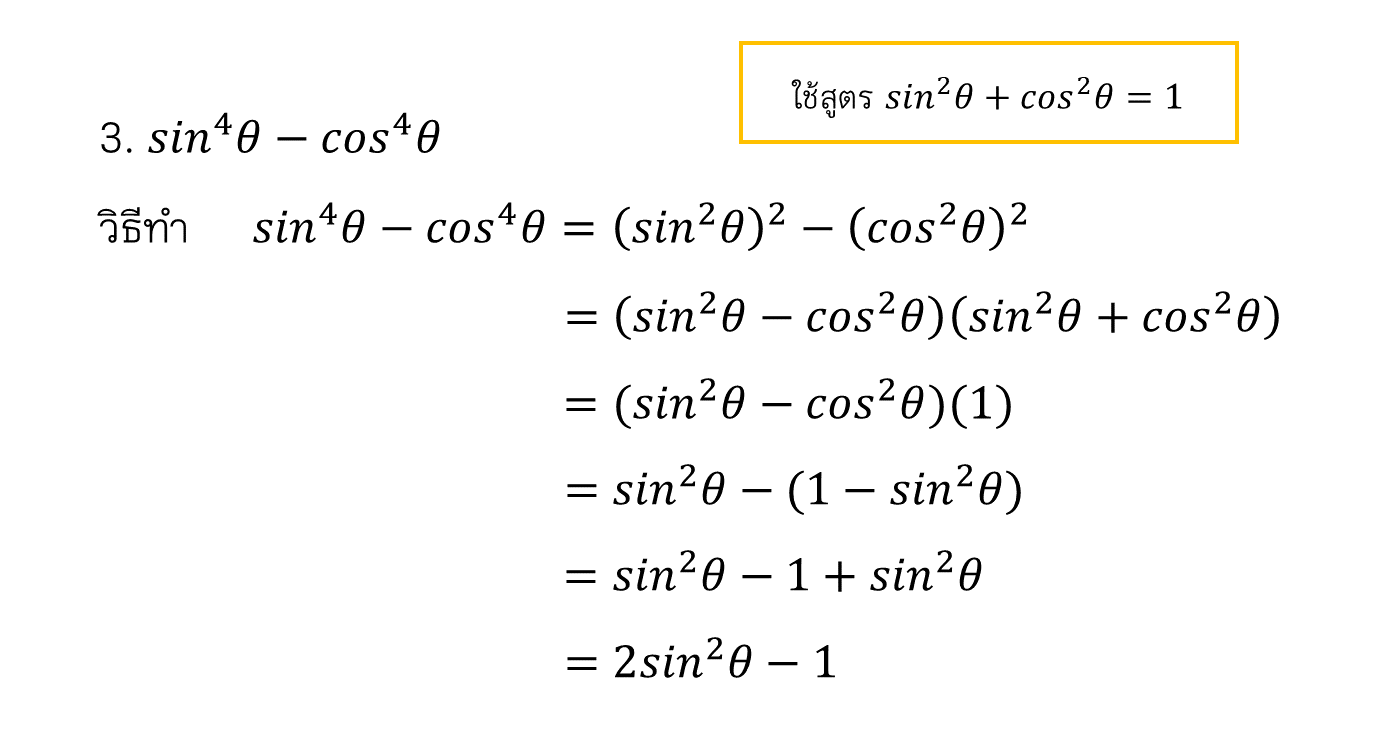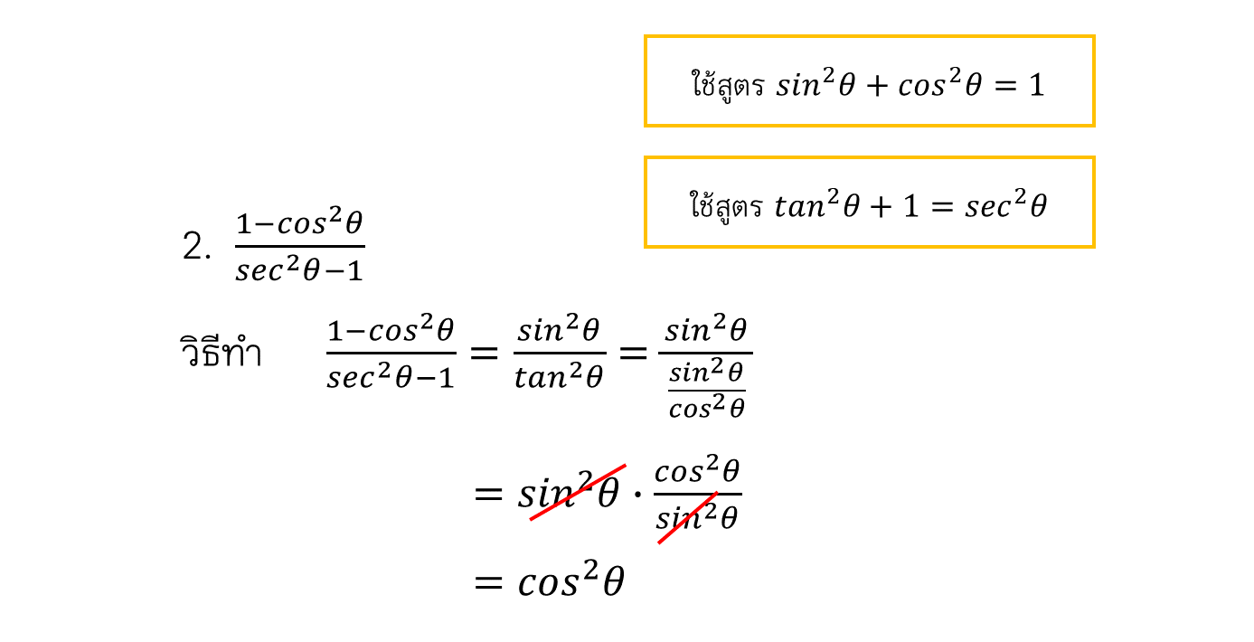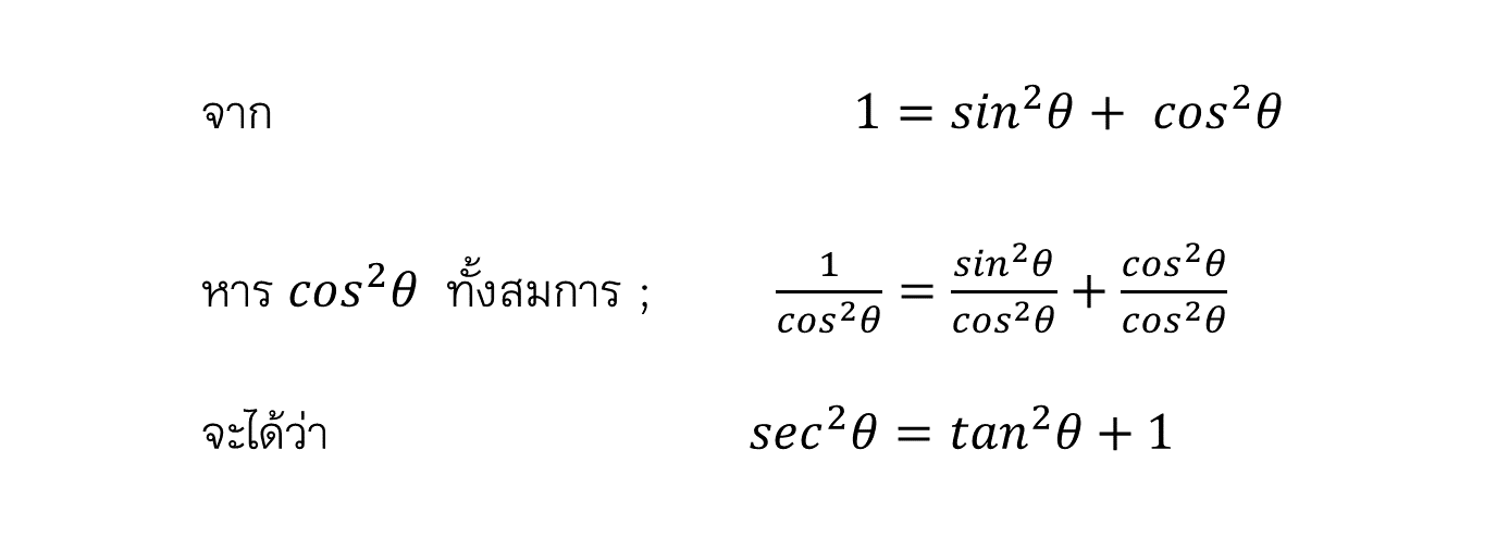 สูตรสุดท้ายก็ทำเหมือนกันเลย แต่เปลี่ยนจากหาร \(cos^2\theta\) เป็นหาร \(sin^2\theta\) ทั้งสมการ