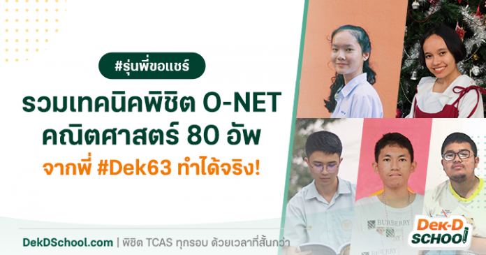 สำหรับน้องๆ ที่จะสอบเข้ามหาวิทยาลัย คะแนน O-NET เป็นคะแนนสำคัญที่ใช้ใน TCAS รอบ 3 และ 4 โดยเฉพาะวิชาคณิตศาสตร์ที่น้องๆ สามารถเก็บคะแนนสูงๆ ได้ วันนี้พี่ๆ #Dek63 ที่สามารถพิชิตคะแนน O-NET คณิตศาสตร์มากกว่า 80 คะแนน จะมาร่วมกันแบ่งปัน เทคนิคพิชิต O-NET คณิตศาสตร์ ครูน้ำรับรองว่าเทคนิคเหล่านี้ใช้ได้จริงกับน้องทุกๆ คน มาติดตามกันเลยค่ะ