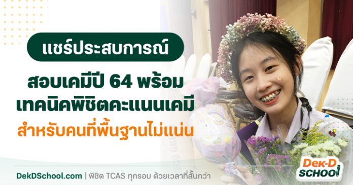 นี่ก็เป็นประสบการณ์จริงจากพี่พลอยนะคะ จะเห็นว่าพี่พลอยเองก็มีพื้นฐานเคมีที่ไม่แน่นมาก่อน แต่ก็พยายามจนกระทั่งสอบเคมีได้คะแนนตามที่ตั้งเป้าหมายไว้และพิชิตคณะในฝันได้สำเร็จ