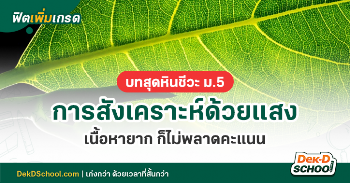 ฟิตเพิ่มเกรดชีวะ ม.ปลาย วันนี้พี่ๆ Dek-D School มีเรื่อง กระบวนการสังเคราะห์ด้วยเเสง (Photosynthesis) มาฝากกัน ซึ่งบทนี้ถือว่าเป็นบทสุดโหดของเนื้อหาม.5 และยังออกข้อสอบ TCAS บ่อยมาก ออกเเทบทุกปี เรียกได้ว่า ออกชัวร์ๆ พี่เลยไม่อยากให้น้องๆ พลาดที่จะเก็บคะเเเนนเรื่องนี้ไป เลยจะมาสรุปภาพรวมของ Photosynthesis ฉบับ อ่านรอบเดียวจำไม่ลืม ให้น้องๆ ไว้ใช้เตรียมตัวสอบทั้งปลายภาคและ TCAS กัน