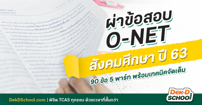 สำหรับข้อสอบ O-NET วิชาสังคมศึกษานั้น ประกอบไปด้วยข้อสอบทั้งสิ้นจำนวน 90 ข้อ