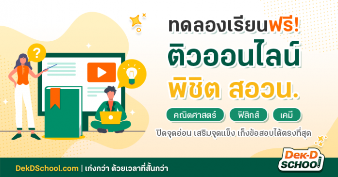 อ่านมาถึงตรงนี้ น้องๆ อาจจะกำลังลังเลว่าจะสมัครเรียนคอร์สพิชิต สอวน. กับ Dek-D School ดีไหม วันนี้พี่ๆ มีคอร์สทดลองเรียนมาฝากคะ ให้น้องๆ ได้ลองเรียนเองเลย อยากรู้ว่าอาจารย์จะสอนดีแบบที่เพื่อนๆ รีวิวไว้ไหม มาเริ่มเรียนกันเลย!