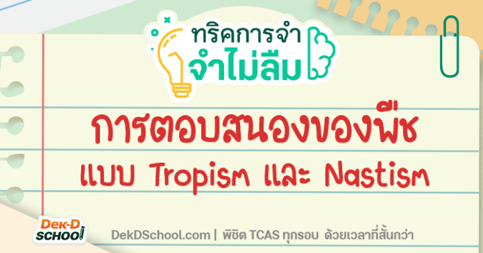 ทริคการจำ จำไม่ลืมวันนี้บอกเลยว่าใครพอมีพื้นฐานภาษาอังกฤษอยู่บ้าง หลังอ่านบทความนี้จบรับรองว่าสามารถจำเรื่อง การตอบสนองของพืช แบบ Tropism และ Nastism ในวิชาชีววิทยาได้ขึ้นใจอย่างแน่นอน