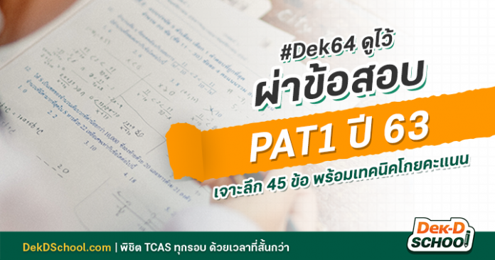 สวัสดีค่ะ น้องๆ #Dek64 ทุกคน ถึงคิวน้องๆ ที่จะต้องเตรียมสอบเข้ามหาวิทยาลัยแล้วนะคะ เมื่อวันที่ 22 กุมภาพันธ์ ที่ผ่านมาพี่ๆ #Dek63 ก็ได้สอบ PAT1 ไป วันนี้พี่บิวจะพาน้องๆ ไปเจาะลึกว่าข้อสอบ PAT1 ปี 63 ที่เพิ่งสอบไปนั้น ออกอะไรบ้าง เพื่อเป็นแนวทางให้น้องๆ ว่าควรเน้นจุดไหน ตรงไหนจะได้คะแนนเยอะ ตรงไหนที่เด็กๆ ชอบพลาดกัน