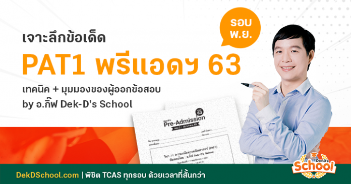 สวัสดีค่ะ น้องๆ #Dek63 และน้องๆ ที่เตรียมตัวสอบ TCAS และน้องๆ ที่ไปสอบโครงการ Dek-D’s Pre-Admission63 (รอบ พ.ย.) ทุกคน เพิ่งสอบไปสดๆ ร้อนเมื่อวันอาทิตย์ที่ผ่านมานี่เลย เป็นยังไงกันบ้างคะ ง่ายกว่ารอบเก่าหรือเปล่า พี่บิวแอบไปส่องในทวิตเตอร์ #dekdPreAd เห็นน้องๆ พูดถึงกันมาเยอะเลย วันนี้พี่บิวก็เลยหยิบทวิตของน้องๆ ออกมาเฉลยพร้อมทั้งทริกและมุมมองการออกข้อสอบ จาก อ.กิ๊ฟ Dek-D School ผู้ออกข้อสอบฉบับนี้ ส่วนทวิตไหนที่พี่บิวหยิบออกมาเฉลยนั้น มาดูพร้อมกันเลย