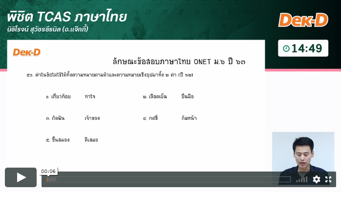 ตอนที่ 3 อาจารย์แจ๊กกี้ก็ยังเก็งข้อสอบตรงอยู่เหมือนเดิม มาดูข้อ 51 ที่อ.แจีกกี้เก็งไว้ในคอร์สพิชิต TCAS ภาษาไทยกัน