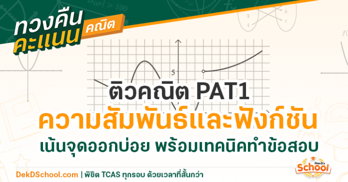 อีกไม่นานก็จะถึงวันสอบ GAT/PAT ของน้องๆ Dek63 น้องๆ หลายคนคงกำลังเตรียมตัวอ่านหนังสือกันอยู่ เป็นยังไงบ้างคะ วันนี้พี่บิวมีเทคนิคดีๆ จาก อ.กิ๊ฟ Dek-D School มาฝากน้องๆ กัน ในเรื่องของความสัมพันธ์และฟังก์ชัน ในข้อสอบ PAT1 มักจะออกเรื่องของโดเมนและเรนจ์ ฟังก์ชันประกอบ และฟังก์ชันบนช่วง สำหรับวันนี้พี่บิวจะหยิบเอาเทคนิคการหาโดเมนและเรนจ์จาก อ.กิ๊ฟมาฝากน้องๆ กัน ถ้าพร้อมแล้วมาลุยกันเลย