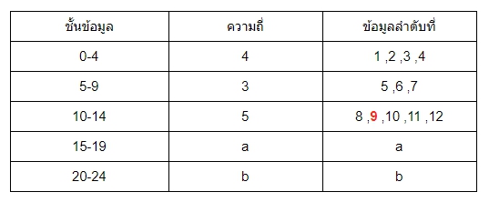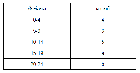 ให้ a และ b เป็นจำนวนเต็มบวก กำหนดตารางแจกแจงความถี่ของข้อมูลชุดหนึ่งเป็นดังนี้