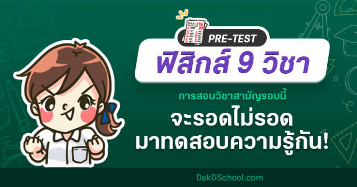 อีกไม่กี่วันน้องๆ ก็จะต้องสอบฟิสิกส์ 9 วิชาสามัญกันแล้ว ใครยังไม่ได้ทำ PRE-TEST เช็คความพร้อมของตัวเอง คลิกที่นี่เพื่อทำ PRE-TEST ได้เลย ส่วนน้องๆ คนไหนที่ทำ PRE-TEST ไปแล้ว อย่าลืมแคปผลลัพธ์มาแชร์พร้อมติดแท็ก #dekdschool ด้วยนะ ใครยังงงๆ ว่าข้อสอบแต่ละข้อใน PRE-TEST มีวิธีทำยังไง พี่ๆ เตรียมเฉลยมาให้แล้ว ไปดูพร้อมกันเลย!