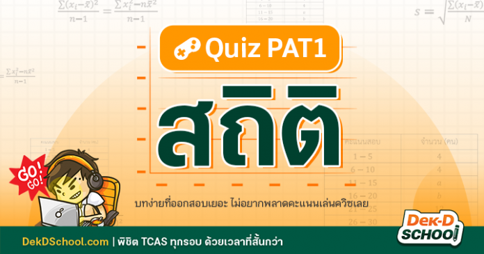 สวัสดีค่ะ น้องๆ #dek63 ทุกคน การสอบ PAT1 ใกล้เข้ามาแล้ว เป็นยังไงบ้างคะ อ่านหนังสือถึงไหนแล้ว ถ้ายังอ่านไม่ถึงไหนลองอ่านบทความนี้ เจาะลึกข้อสอบ PAT1 และวันนี้พี่บิวมีควิซข้อสอบ PAT1 มาทดสอบน้องๆ ควิซนี้เป็นเรื่องสถิติ ซึ่งเป็นเรื่องที่ออกสอบเยอะ และข้อสอบไม่ยากด้วย เมื่อเทียบกับบทอื่นๆ ข้อสอบสถิติส่วนใหญ่จะให้ข้อมูลมาชุดนึงแล้วถามตรงๆ เลย ถ้าเราไม่แทนค่าผิด ไม่แทนสูตรผิด เราสามารถเก็บคะแนนจากบทนี้ได้แบบไม่ยากเลย